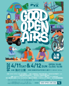 「GOOD OPEN AIRS」は、多彩なジャンルが揃う展示・販売をはじめ、会場全体で展開される企画やコンテンツ、ワークショップや体験アクティビティなどが楽しめるアウトドアイベントです。